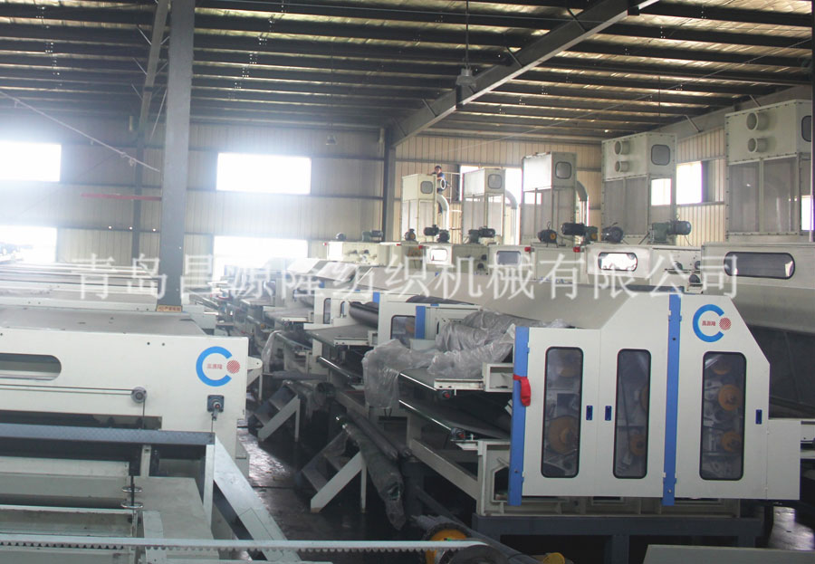 4. CYLSL-2000梳理(lǐ)機:該機為單錫林、雙道夫(fū)、四雜亂、羅拉剝取。該機所有(yǒu)輥筒都經調質和(hé)定性處理後,再精密加工。牆板(bǎn)由鑄鐵加工而成,針布采用國產優質針布,並配(pèi)有吸風裝置,可減少清機次數,還帶有走台(tái)。具有分梳能(néng)力強,產量(liàng)高等優點。