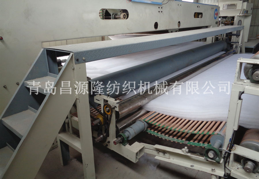 5. CYLPW-2200鋪網機(jī):機(jī)架采(cǎi)用6mm鋼板折彎而成,鋪網簾之(zhī)間(jiān)加補償電機,減少纖(xiān)網牽伸。往複換(huàn)向(xiàng)用變頻控(kòng)製,衝擊力小,能自動緩衝平衡(héng)換(huàn)向(xiàng),並配(pèi)有多段速控製。底簾可調節升降,使棉(mián)網能按照所需要的單位克重均勻鋪疊到底簾上,供(gòng)下一道(dào)工(gōng)序使用。斜簾﹑平簾和大(dà)車平簾用(yòng)高(gāo)檔優質皮簾,底簾和環簾為木簾子。