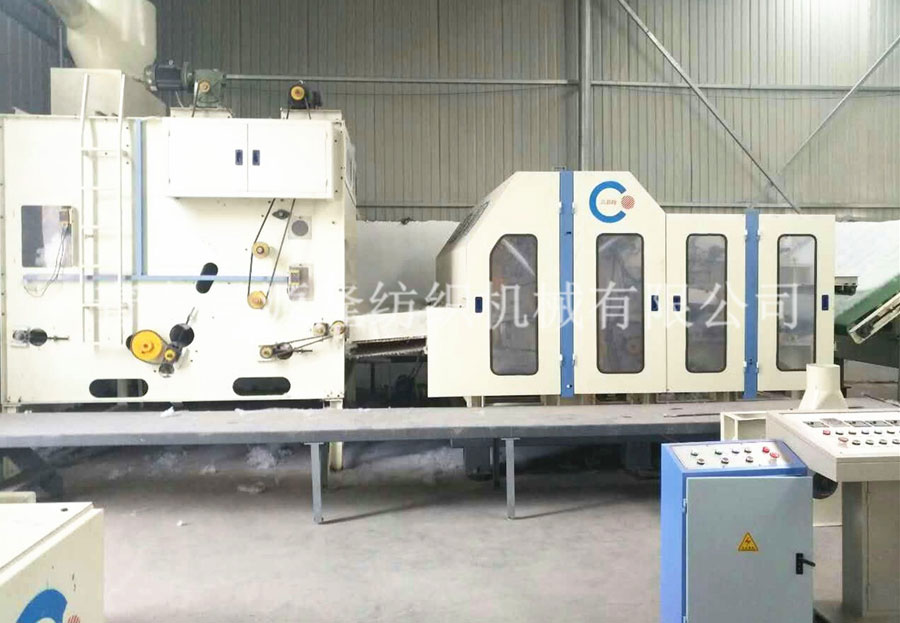3. CYLMX-1850振動(dòng)給棉機:將開鬆纖維進一步鬆混合,並處理(lǐ)成均勻的筵棉供下道工序。容積式定量喂入,光電控製、調節方便、給棉量準確均勻。