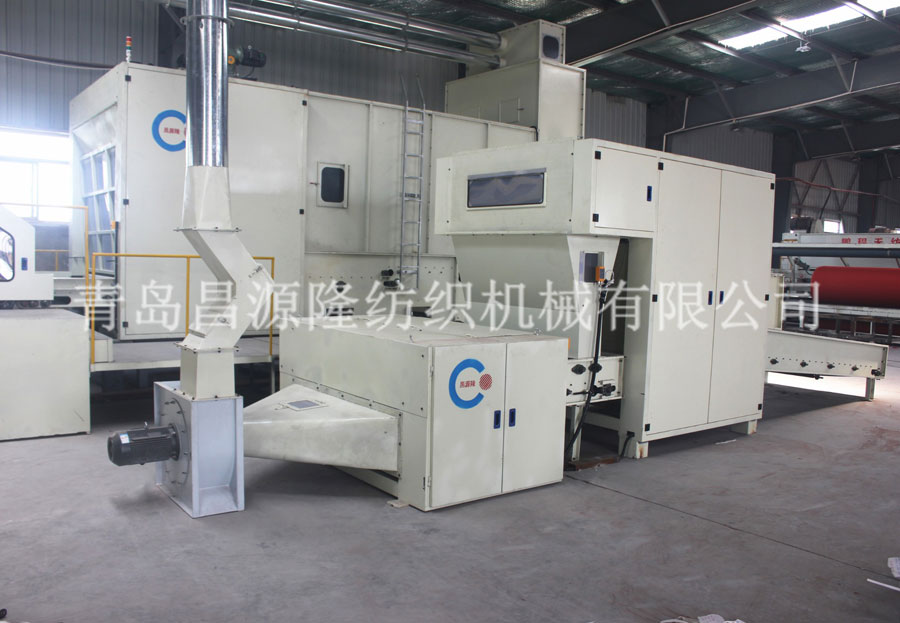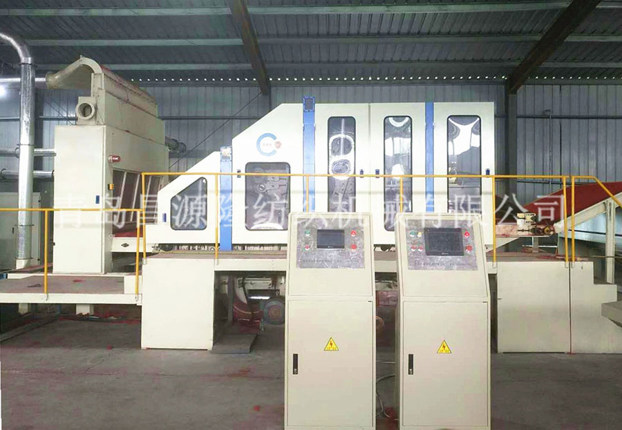 4. CYLSL-梳理(lǐ)機:該機為雙錫林、雙道夫、四雜亂、羅拉剝取。該機所(suǒ)有輥筒都(dōu)經調質和(hé)定性(xìng)處理後,再精(jīng)密(mì)加工。牆板由鑄鐵加工而成,針布采用國產優質針布,並配(pèi)有吸風裝置,可減少清機次數,還帶有走(zǒu)台。具有分梳能力強,產量高等優點。