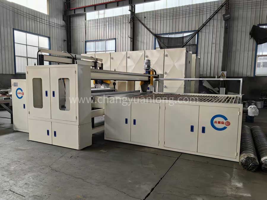 將經過(guò)定型(xíng)機輸出的棉層,根據不同的(de)尺寸要求,進行切邊,自動收卷的機械。