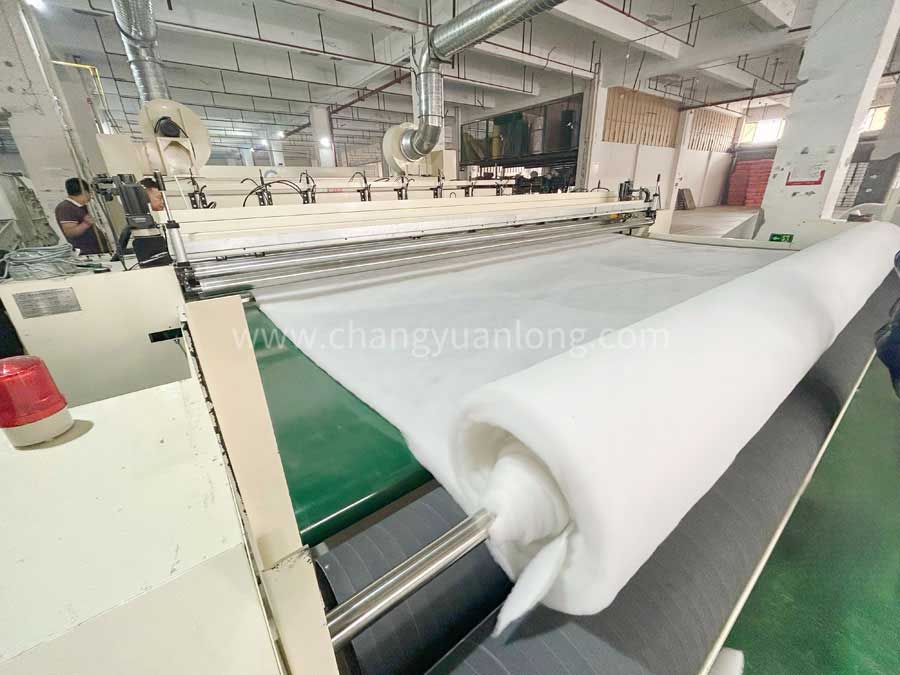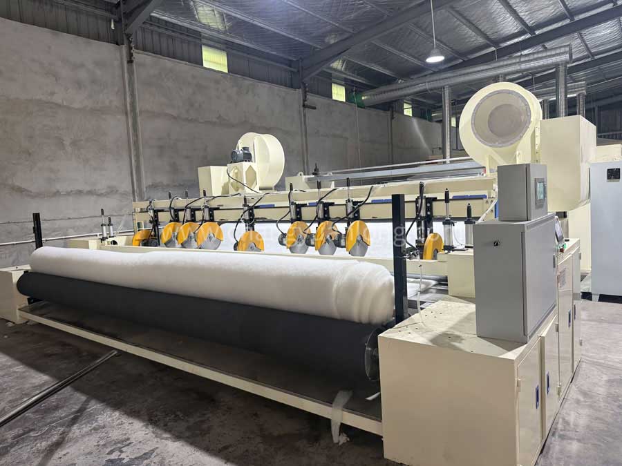 展開輥使(shǐ)棉層展平,消除棉層在拉伸應力作用下產生的一些縱向皺紋。