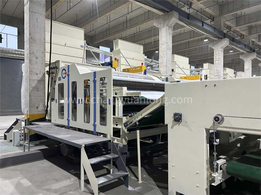 單錫林雙(shuāng)道夫(fū)梳理機:該機為單錫林、雙道夫、四雜亂(luàn)、羅拉剝取。該(gāi)機所有輥筒都經調質和定性處理後,再精密加工。牆板由鑄鐵加工而成,針布采用國產優質針布,並配有吸風裝置,可減少清(qīng)機次(cì)數,還(hái)帶有走台。具有分梳能力強,產量高(gāo)等優點。