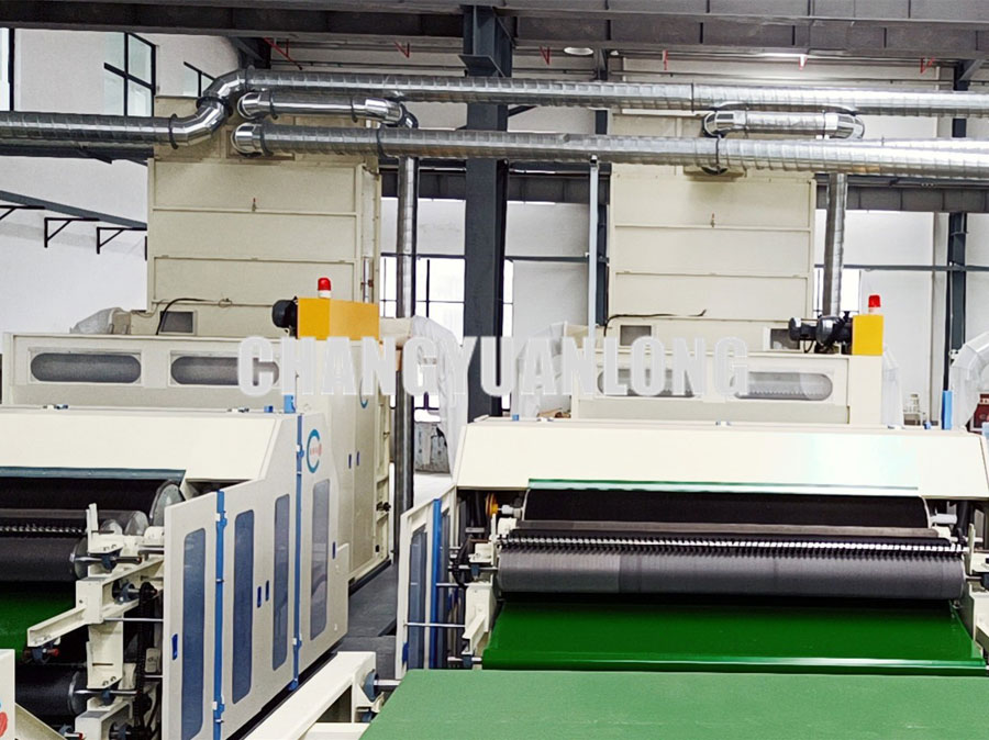 超寬(kuān)6米柒機頭仿(fǎng)絲棉生產線試車成功!